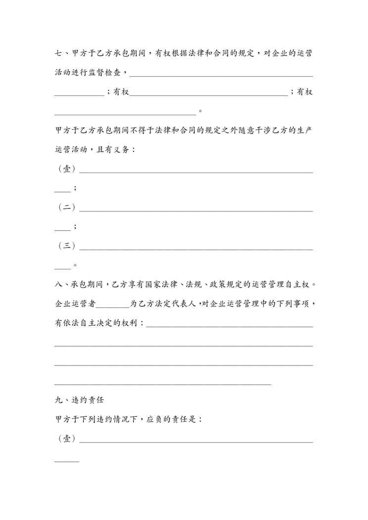 不久前,最新文档《(合同知识)承包合同承包合同书(企业)》全文正式在本站发布,感兴趣的用户可以下载阅读。 声明:本站所有文章,如无特殊说明或标注,均为本站原创发布。任何个人或组织,在未征得本站同意时,禁止复制、盗用、采集、发布本站内容到任何网站、书籍等各类媒体平台。如若本站内容侵犯了原著者的合法权益,可联系我们进行处理。