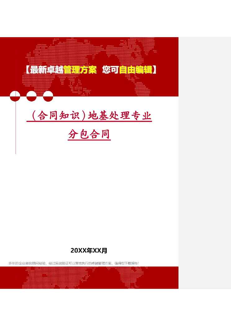 不久前,最新文档《(合同知识)地基处理专业分包合同》全文正式在本站发布,感兴趣的用户可以下载阅读。 声明:本站所有文章,如无特殊说明或标注,均为本站原创发布。任何个人或组织,在未征得本站同意时,禁止复制、盗用、采集、发布本站内容到任何网站、书籍等各类媒体平台。如若本站内容侵犯了原著者的合法权益,可联系我们进行处理。