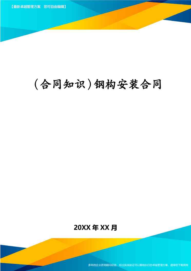 本站正式发布了《(合同知识)钢构安装合同》文档,文档详细内容可下载阅读。 声明:本站所有文章,如无特殊说明或标注,均为本站原创发布。任何个人或组织,在未征得本站同意时,禁止复制、盗用、采集、发布本站内容到任何网站、书籍等各类媒体平台。如若本站内容侵犯了原著者的合法权益,可联系我们进行处理。