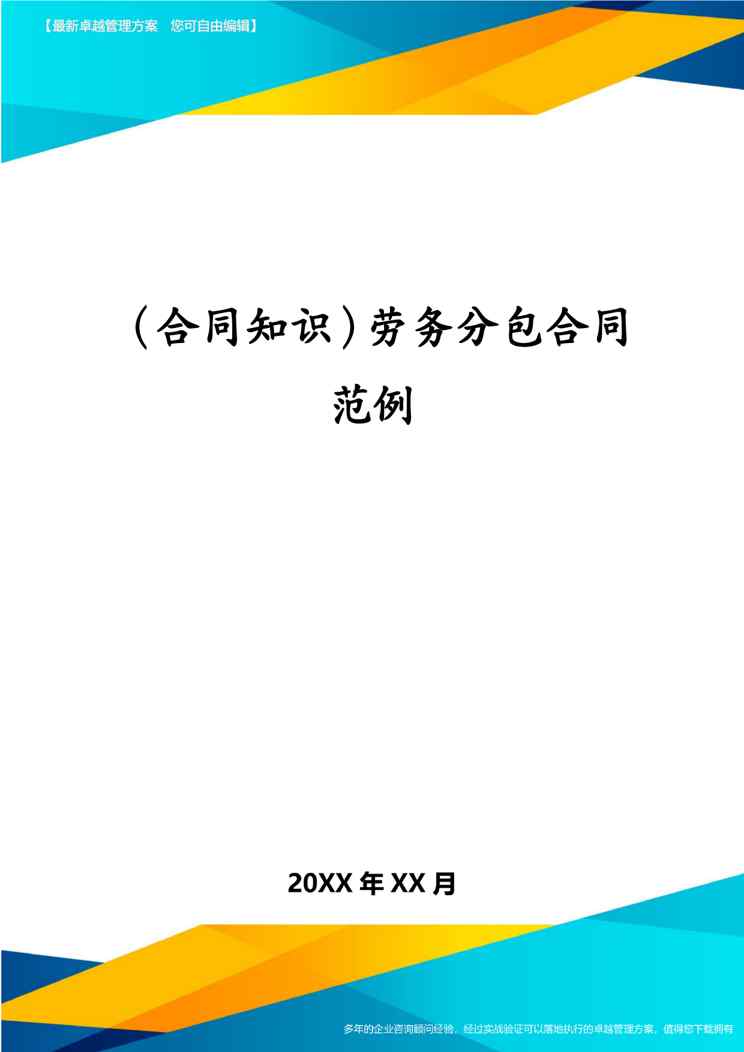 本站正式发布了《(合同知识)劳务分包合同范例》文档,文档详细内容可下载阅读。 声明:本站所有文章,如无特殊说明或标注,均为本站原创发布。任何个人或组织,在未征得本站同意时,禁止复制、盗用、采集、发布本站内容到任何网站、书籍等各类媒体平台。如若本站内容侵犯了原著者的合法权益,可联系我们进行处理。