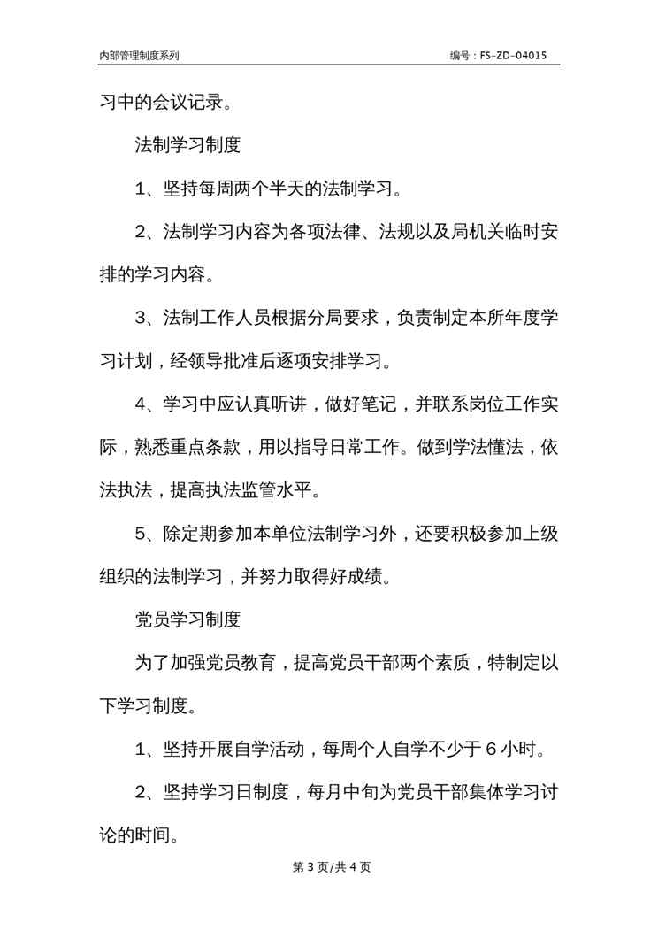 不久前,最新文档《Z行政事业单位学习管理制度范本》全文正式在本站发布,感兴趣的用户可以下载阅读。 声明:本站所有文章,如无特殊说明或标注,均为本站原创发布。任何个人或组织,在未征得本站同意时,禁止复制、盗用、采集、发布本站内容到任何网站、书籍等各类媒体平台。如若本站内容侵犯了原著者的合法权益,可联系我们进行处理。