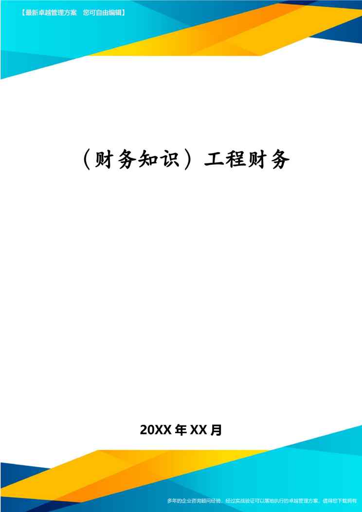 本站资深用户发布了最新的《(财务知识)工程财务》文档,以下内容为预览,详细内容可下载阅读。 声明:本站所有文章,如无特殊说明或标注,均为本站原创发布。任何个人或组织,在未征得本站同意时,禁止复制、盗用、采集、发布本站内容到任何网站、书籍等各类媒体平台。如若本站内容侵犯了原著者的合法权益,可联系我们进行处理。