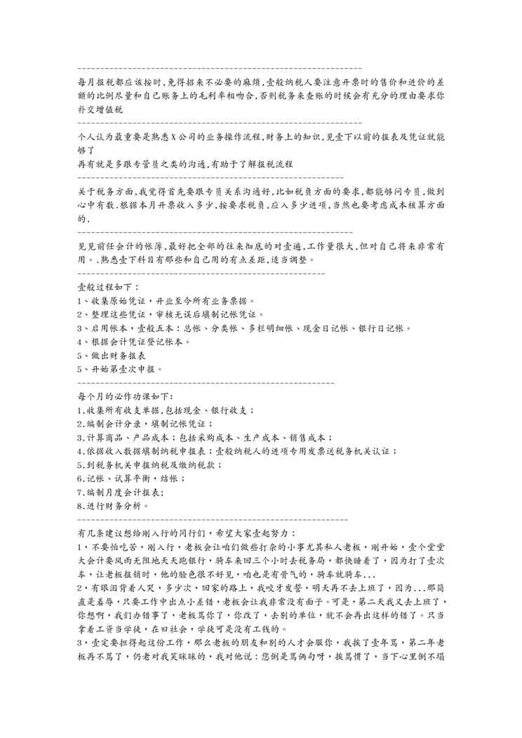本站资深用户发布了最新的《(财务知识)财务新手如何开展财务工作》文档,以下内容为预览,详细内容可下载阅读。 声明:本站所有文章,如无特殊说明或标注,均为本站原创发布。任何个人或组织,在未征得本站同意时,禁止复制、盗用、采集、发布本站内容到任何网站、书籍等各类媒体平台。如若本站内容侵犯了原著者的合法权益,可联系我们进行处理。