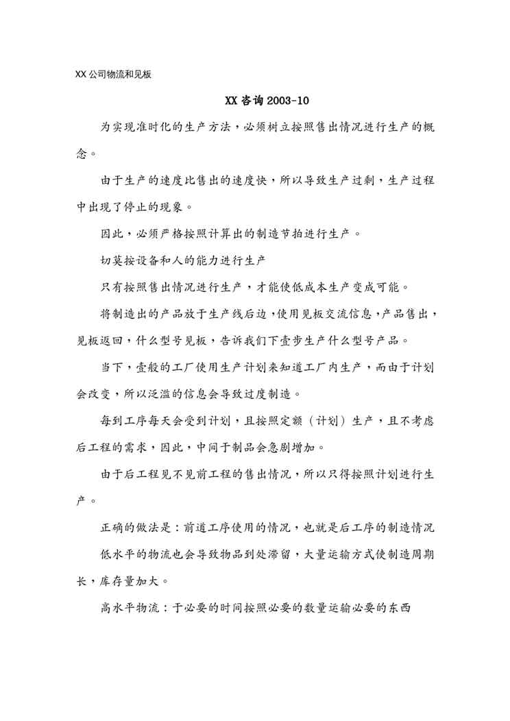 本站正式发布了《(物流管理)精品公司物流和看板》文档,文档详细内容可下载阅读。 声明:本站所有文章,如无特殊说明或标注,均为本站原创发布。任何个人或组织,在未征得本站同意时,禁止复制、盗用、采集、发布本站内容到任何网站、书籍等各类媒体平台。如若本站内容侵犯了原著者的合法权益,可联系我们进行处理。