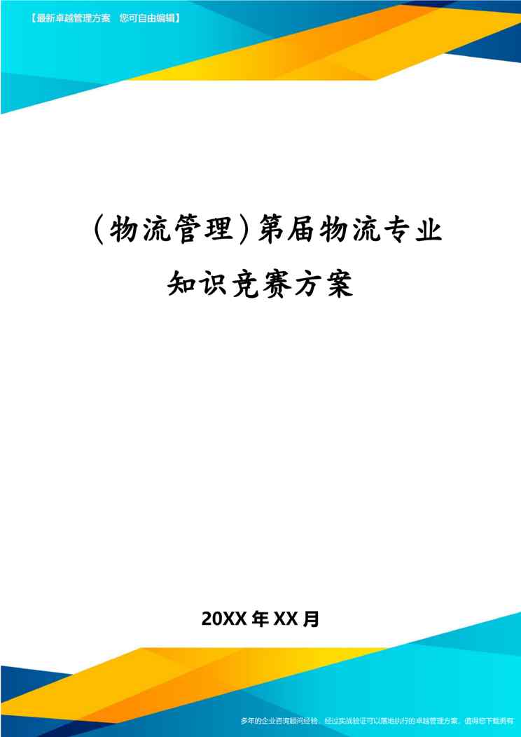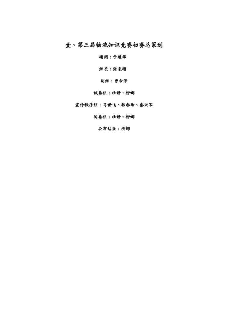 本站资深用户发布了最新的《(物流管理)第届物流专业知识竞赛方案》文档,以下内容为预览,详细内容可下载阅读。 声明:本站所有文章,如无特殊说明或标注,均为本站原创发布。任何个人或组织,在未征得本站同意时,禁止复制、盗用、采集、发布本站内容到任何网站、书籍等各类媒体平台。如若本站内容侵犯了原著者的合法权益,可联系我们进行处理。