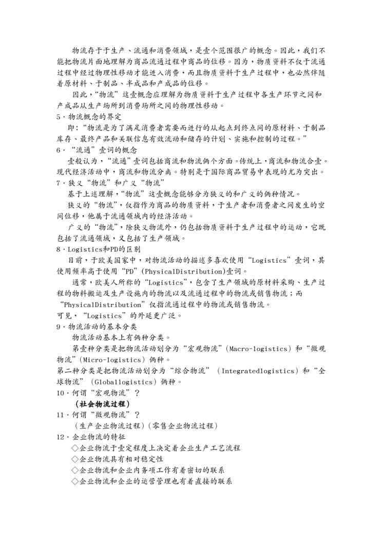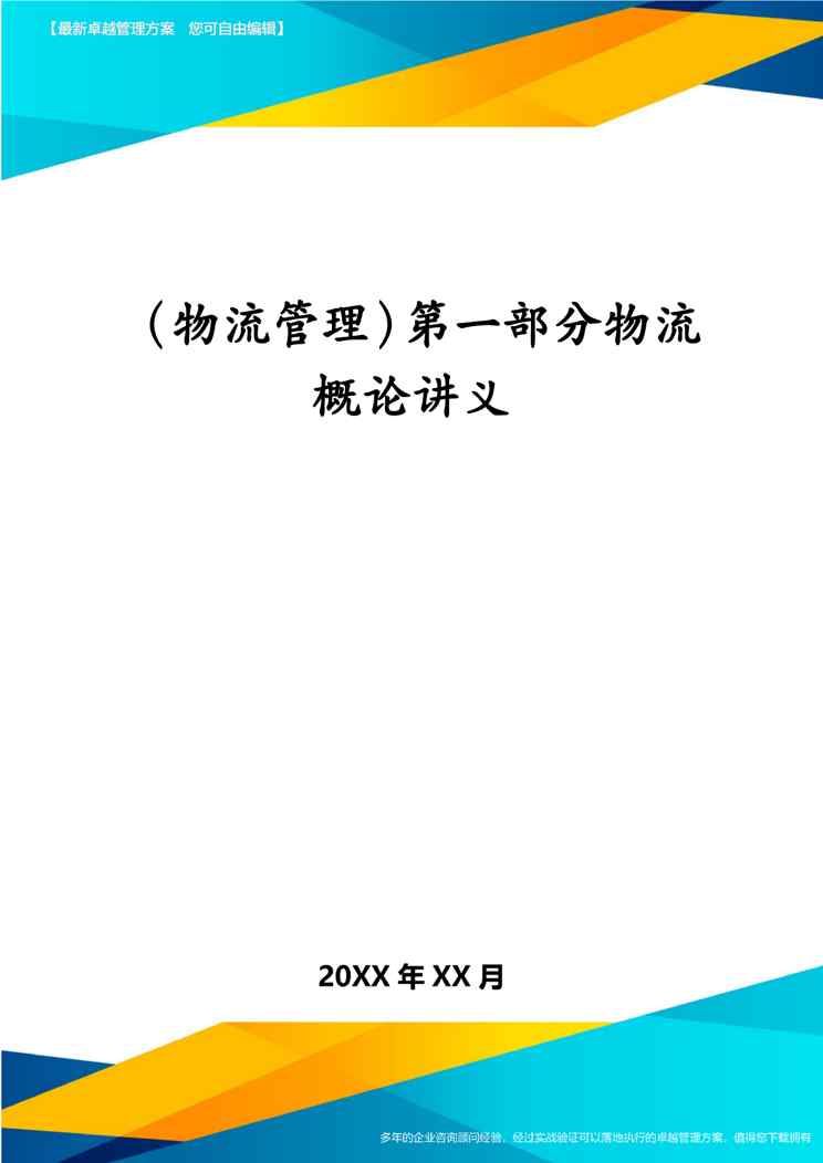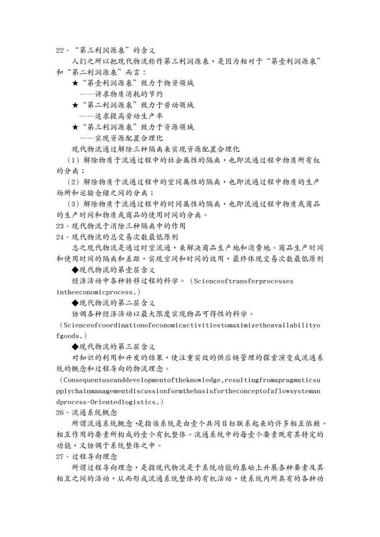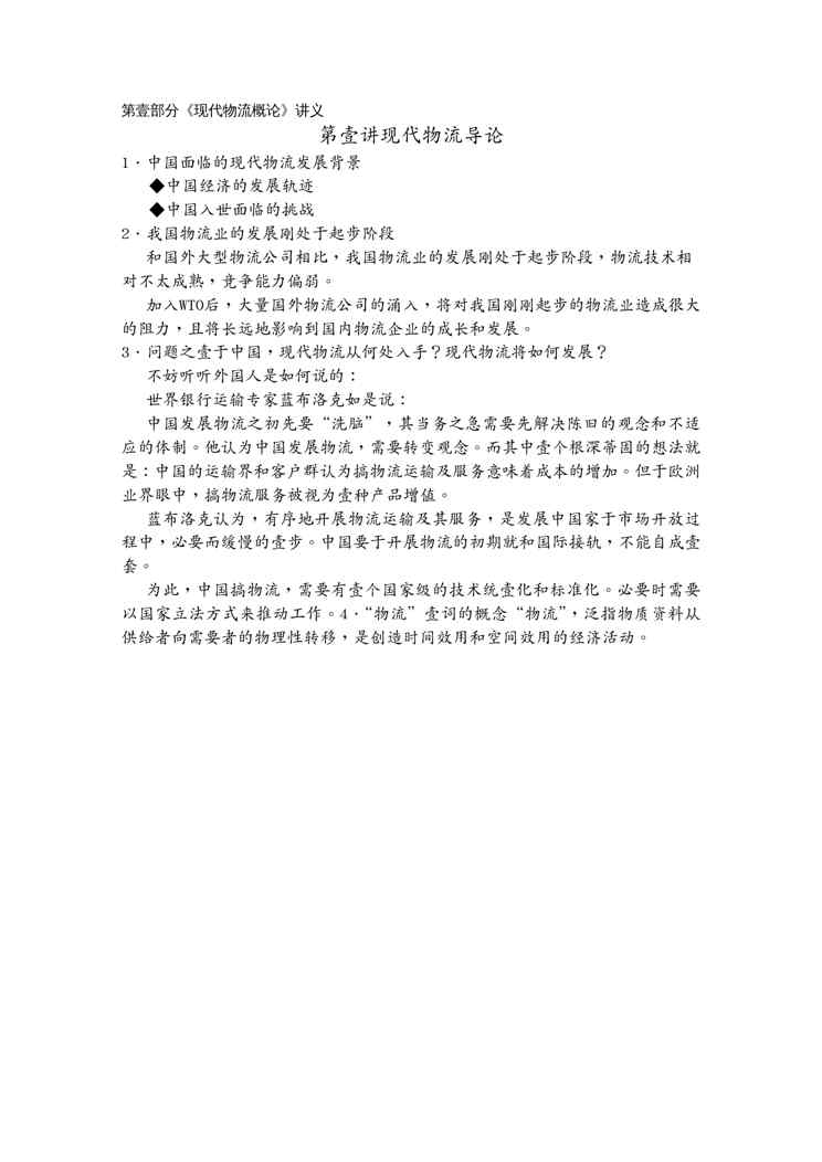 不久前,最新文档《(物流管理)第一部分物流概论讲义》全文正式在本站发布,感兴趣的用户可以下载阅读。 声明:本站所有文章,如无特殊说明或标注,均为本站原创发布。任何个人或组织,在未征得本站同意时,禁止复制、盗用、采集、发布本站内容到任何网站、书籍等各类媒体平台。如若本站内容侵犯了原著者的合法权益,可联系我们进行处理。