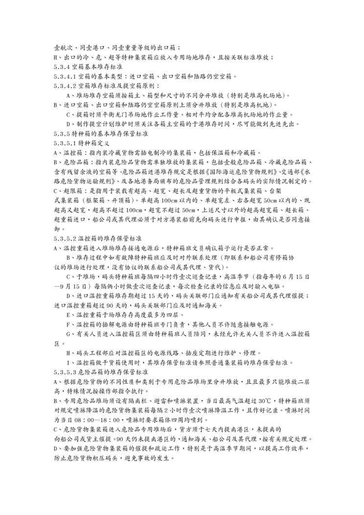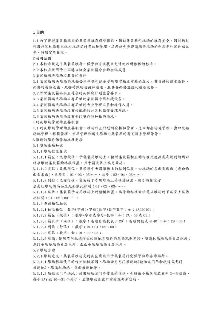 不久前,最新文档《(物流管理)物流集装箱堆存保管标准》全文正式在本站发布,感兴趣的用户可以下载阅读。 声明:本站所有文章,如无特殊说明或标注,均为本站原创发布。任何个人或组织,在未征得本站同意时,禁止复制、盗用、采集、发布本站内容到任何网站、书籍等各类媒体平台。如若本站内容侵犯了原著者的合法权益,可联系我们进行处理。