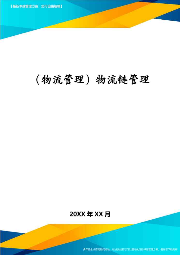 本站正式发布了《(物流管理)物流链管理》文档,文档详细内容可下载阅读。 声明:本站所有文章,如无特殊说明或标注,均为本站原创发布。任何个人或组织,在未征得本站同意时,禁止复制、盗用、采集、发布本站内容到任何网站、书籍等各类媒体平台。如若本站内容侵犯了原著者的合法权益,可联系我们进行处理。