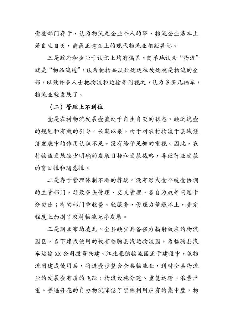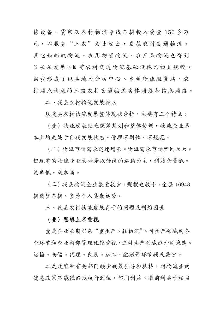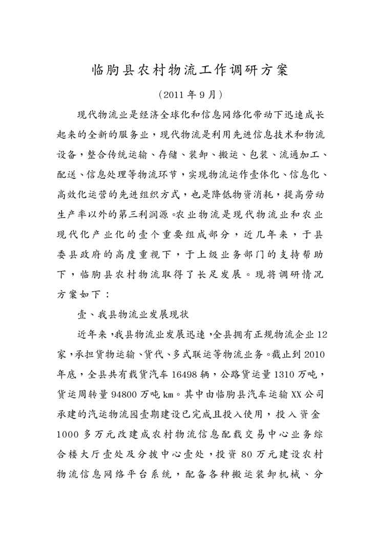 本站资深用户发布了最新的《(物流管理)物流调研》文档,以下内容为预览,详细内容可下载阅读。 声明:本站所有文章,如无特殊说明或标注,均为本站原创发布。任何个人或组织,在未征得本站同意时,禁止复制、盗用、采集、发布本站内容到任何网站、书籍等各类媒体平台。如若本站内容侵犯了原著者的合法权益,可联系我们进行处理。