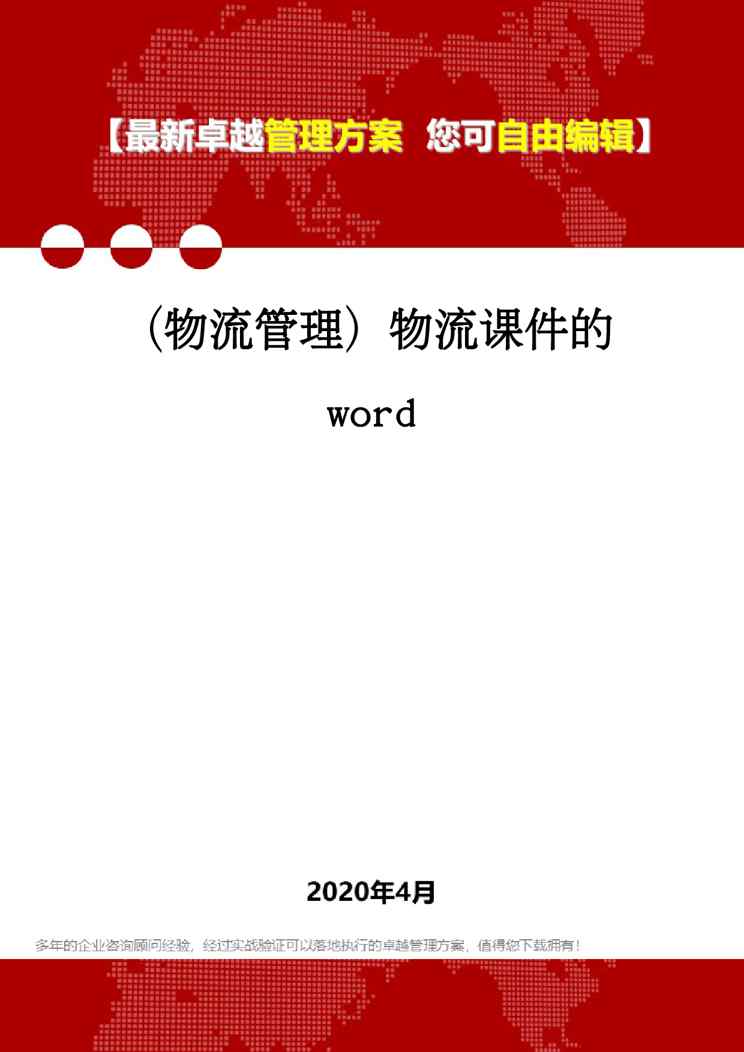 本站资深用户发布了最新的《(物流管理)物流课件的word》文档,以下内容为预览,详细内容可下载阅读。 声明:本站所有文章,如无特殊说明或标注,均为本站原创发布。任何个人或组织,在未征得本站同意时,禁止复制、盗用、采集、发布本站内容到任何网站、书籍等各类媒体平台。如若本站内容侵犯了原著者的合法权益,可联系我们进行处理。