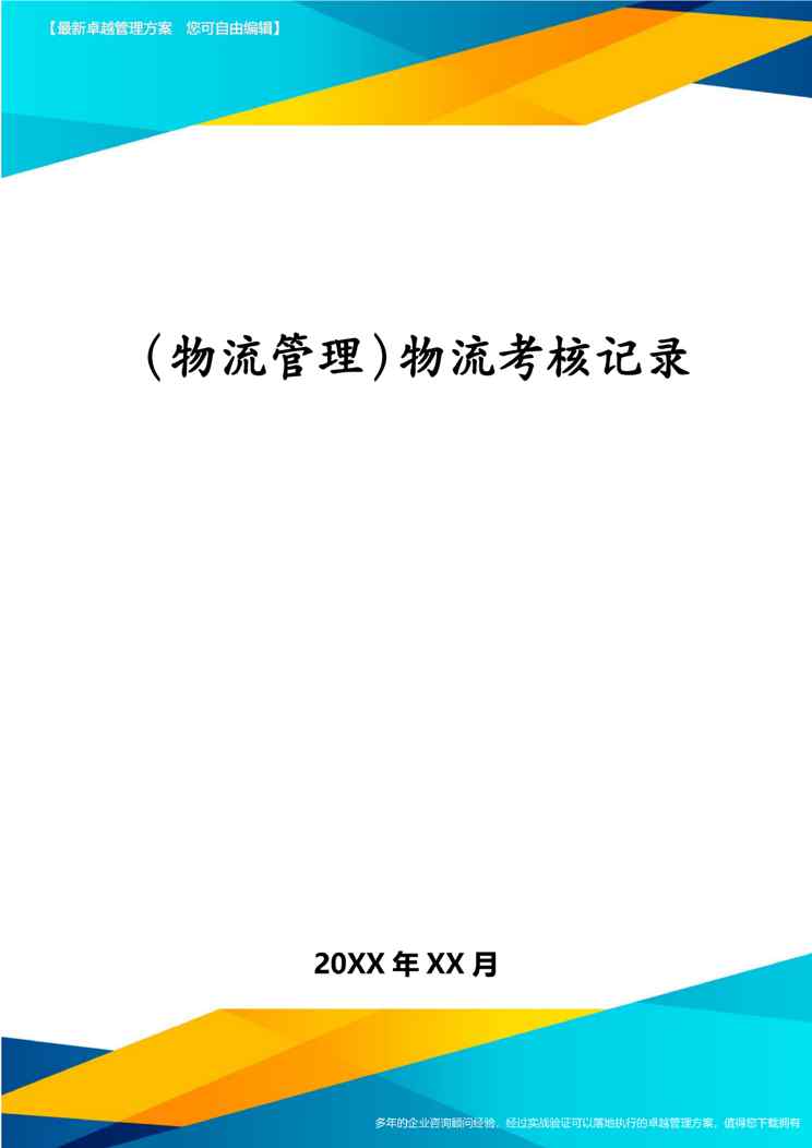 本站资深用户发布了最新的《(物流管理)物流考核记录》文档,以下内容为预览,详细内容可下载阅读。 声明:本站所有文章,如无特殊说明或标注,均为本站原创发布。任何个人或组织,在未征得本站同意时,禁止复制、盗用、采集、发布本站内容到任何网站、书籍等各类媒体平台。如若本站内容侵犯了原著者的合法权益,可联系我们进行处理。