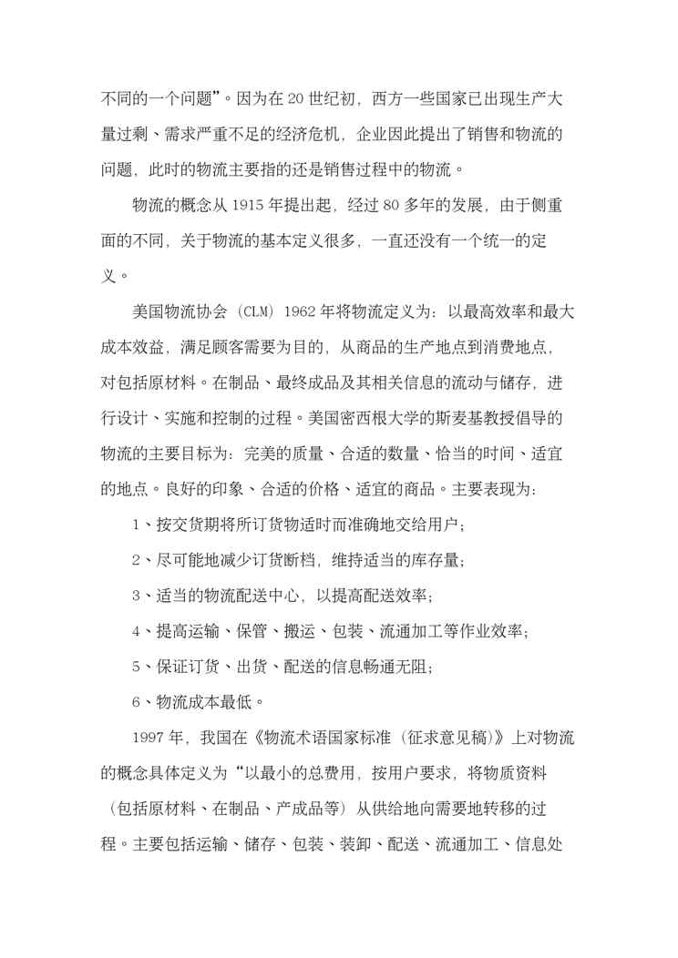 本站资深用户发布了最新的《(物流管理)物流管理物流配送管理物流基本概念》文档,以下内容为预览,详细内容可下载阅读。 声明:本站所有文章,如无特殊说明或标注,均为本站原创发布。任何个人或组织,在未征得本站同意时,禁止复制、盗用、采集、发布本站内容到任何网站、书籍等各类媒体平台。如若本站内容侵犯了原著者的合法权益,可联系我们进行处理。