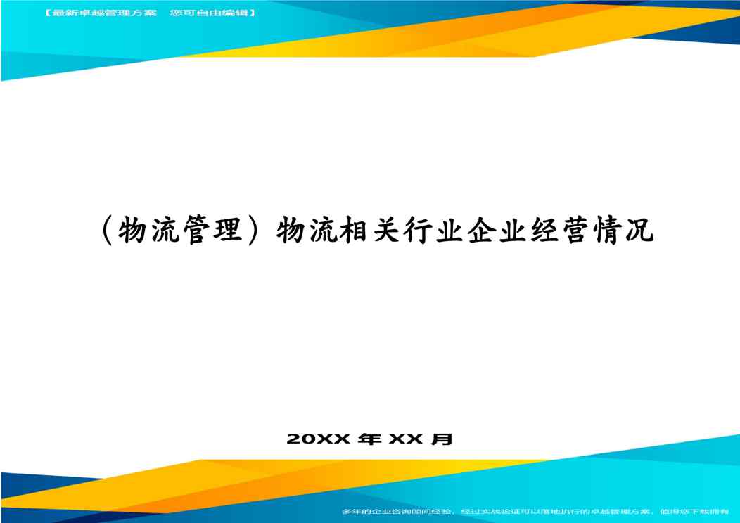本站正式发布了《(物流管理)物流相关行业企业经营情况》文档,文档详细内容可下载阅读。 声明:本站所有文章,如无特殊说明或标注,均为本站原创发布。任何个人或组织,在未征得本站同意时,禁止复制、盗用、采集、发布本站内容到任何网站、书籍等各类媒体平台。如若本站内容侵犯了原著者的合法权益,可联系我们进行处理。