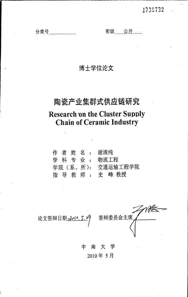 不久前,最新文档《陶瓷产业集群式供应链研究》全文正式在本站发布,感兴趣的用户可以下载阅读。 声明:本站所有文章,如无特殊说明或标注,均为本站原创发布。任何个人或组织,在未征得本站同意时,禁止复制、盗用、采集、发布本站内容到任何网站、书籍等各类媒体平台。如若本站内容侵犯了原著者的合法权益,可联系我们进行处理。