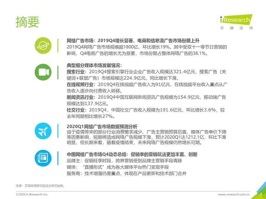 本站正式发布了《艾瑞咨询:2019Q4中国新经济产业典型市场数据发布&2020Q1数据预期》文档,文档详细内容可下载阅读。 声明:本站所有文章,如无特殊说明或标注,均为本站原创发布。任何个人或组织,在未征得本站同意时,禁止复制、盗用、采集、发布本站内容到任何网站、书籍等各类媒体平台。如若本站内容侵犯了原著者的合法权益,可联系我们进行处理。