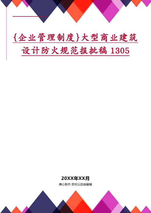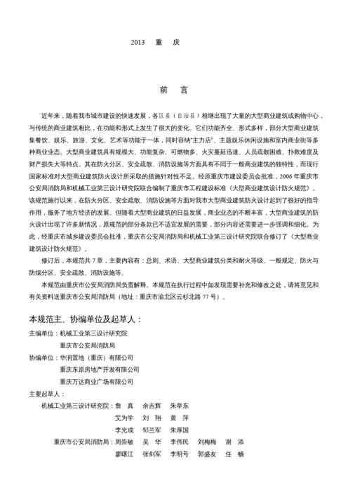 本站资深用户发布了最新的《{企业管理制度}大型商业建筑设计防火规范报批稿1305》文档,以下内容为预览,详细内容可下载阅读。 声明:本站所有文章,如无特殊说明或标注,均为本站原创发布。任何个人或组织,在未征得本站同意时,禁止复制、盗用、采集、发布本站内容到任何网站、书籍等各类媒体平台。如若本站内容侵犯了原著者的合法权益,可联系我们进行处理。