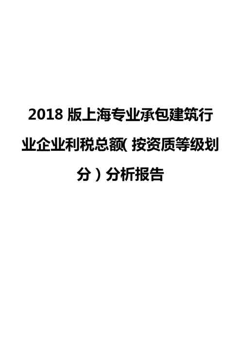 本站正式发布了《2018版上海专业承包建筑行业企业利税总额(按资质等级划分)分析报告》文档,文档详细内容可下载阅读。 声明:本站所有文章,如无特殊说明或标注,均为本站原创发布。任何个人或组织,在未征得本站同意时,禁止复制、盗用、采集、发布本站内容到任何网站、书籍等各类媒体平台。如若本站内容侵犯了原著者的合法权益,可联系我们进行处理。