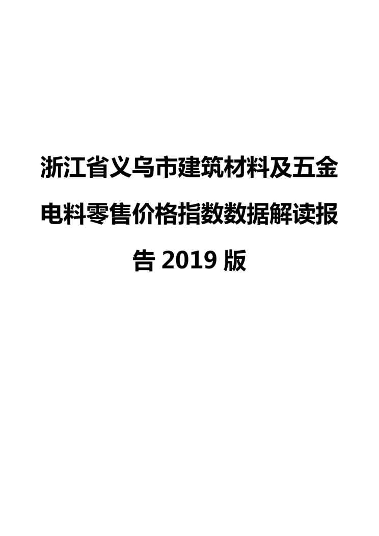 本站正式发布了《浙江省义乌市建筑材料及五金电料零售价格指数数据解读报告2019版》文档,文档详细内容可下载阅读。 声明:本站所有文章,如无特殊说明或标注,均为本站原创发布。任何个人或组织,在未征得本站同意时,禁止复制、盗用、采集、发布本站内容到任何网站、书籍等各类媒体平台。如若本站内容侵犯了原著者的合法权益,可联系我们进行处理。