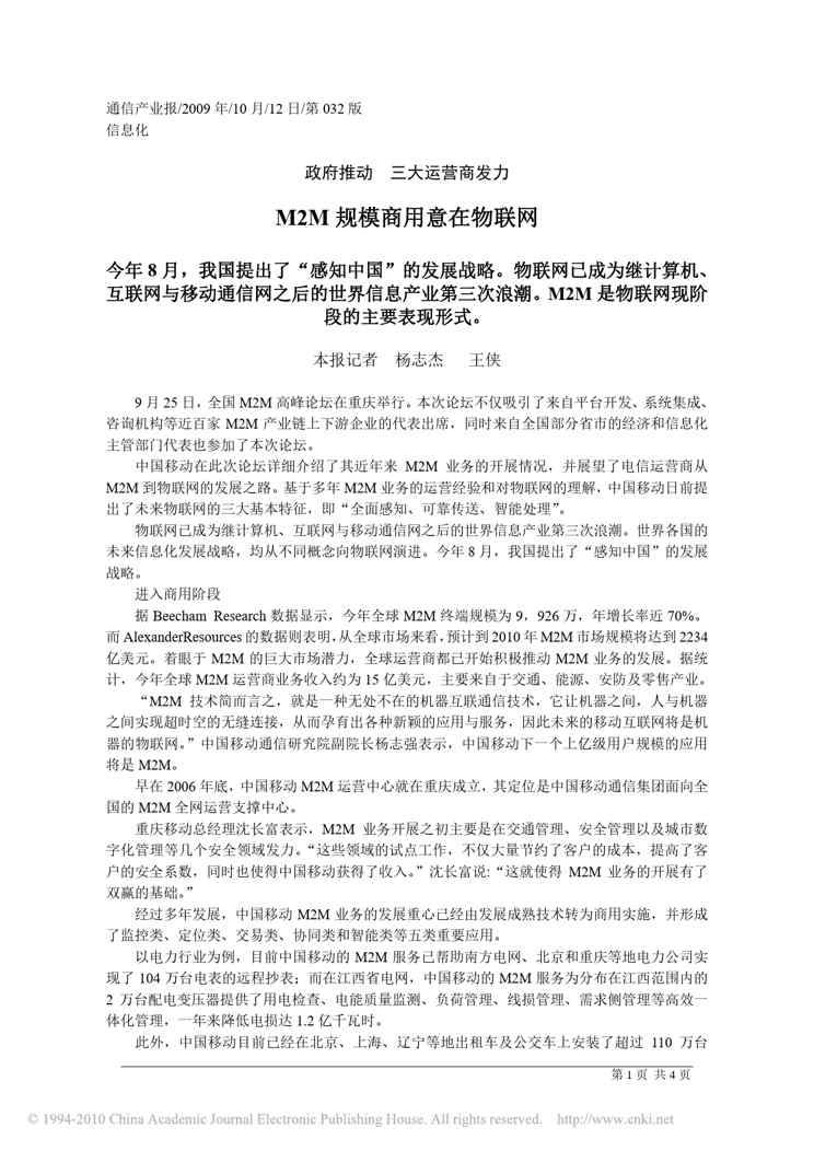 不久前,最新文档《MM规模商用意在物联网》全文正式在本站发布,感兴趣的用户可以下载阅读。 声明:本站所有文章,如无特殊说明或标注,均为本站原创发布。任何个人或组织,在未征得本站同意时,禁止复制、盗用、采集、发布本站内容到任何网站、书籍等各类媒体平台。如若本站内容侵犯了原著者的合法权益,可联系我们进行处理。