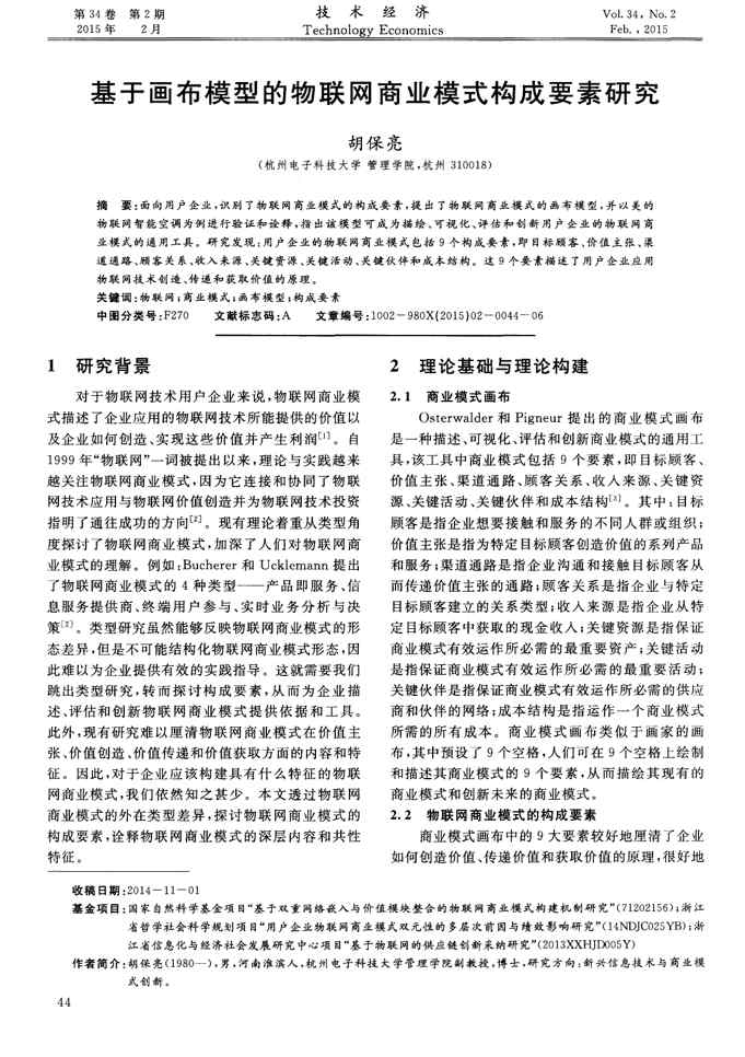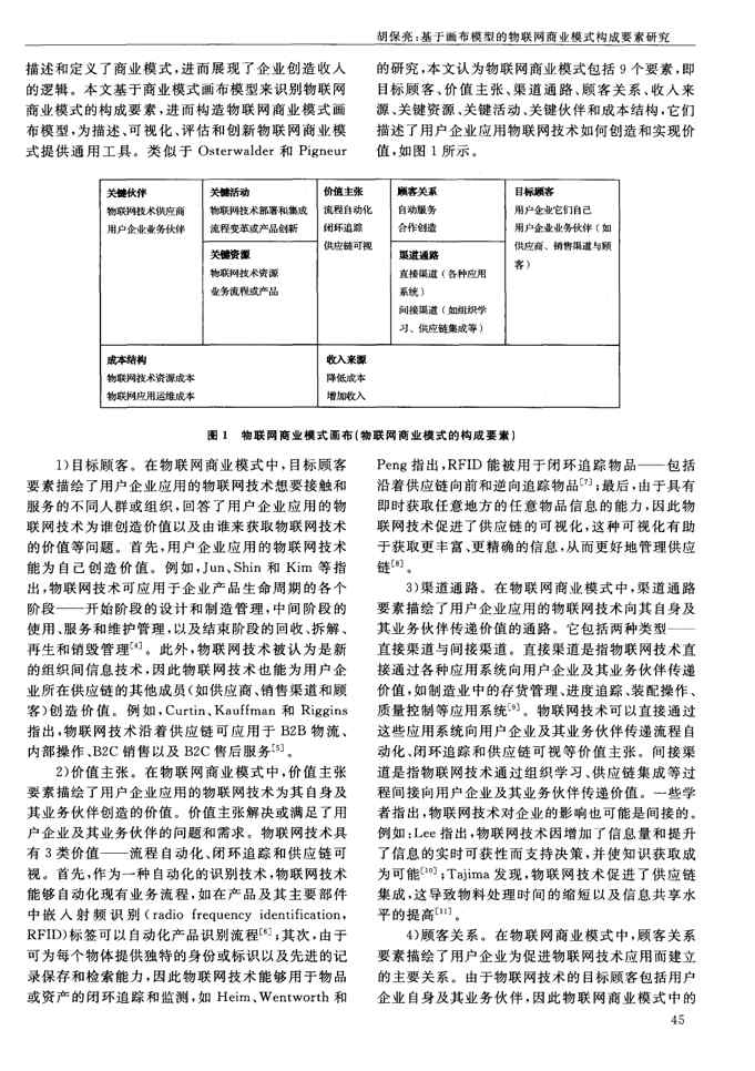 本站资深用户发布了最新的《基于画布模型的物联网商业模式构成要素研究》文档,以下内容为预览,详细内容可下载阅读。 声明:本站所有文章,如无特殊说明或标注,均为本站原创发布。任何个人或组织,在未征得本站同意时,禁止复制、盗用、采集、发布本站内容到任何网站、书籍等各类媒体平台。如若本站内容侵犯了原著者的合法权益,可联系我们进行处理。