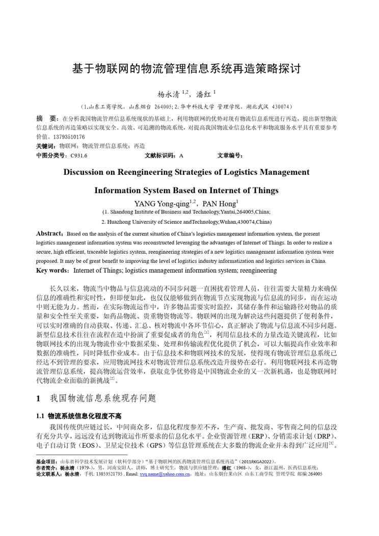 本站资深用户发布了最新的《基于物联网的物流管理信息系统再造研究定稿》文档,以下内容为预览,详细内容可下载阅读。 声明:本站所有文章,如无特殊说明或标注,均为本站原创发布。任何个人或组织,在未征得本站同意时,禁止复制、盗用、采集、发布本站内容到任何网站、书籍等各类媒体平台。如若本站内容侵犯了原著者的合法权益,可联系我们进行处理。