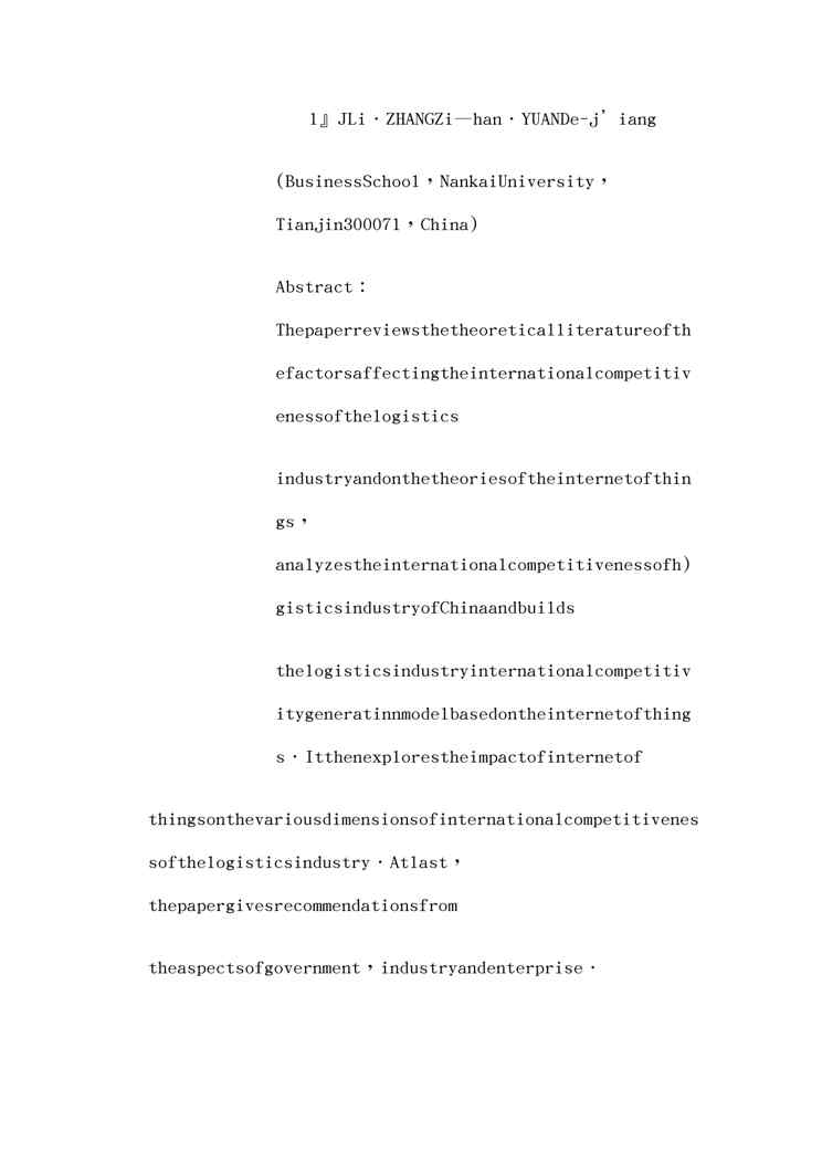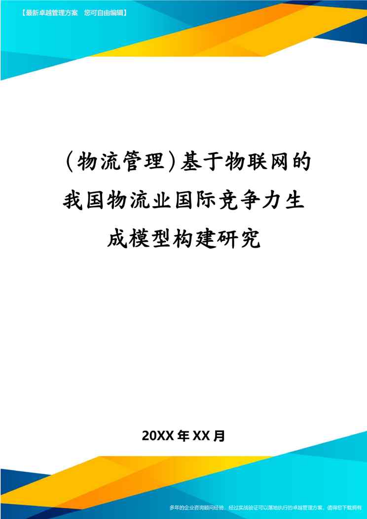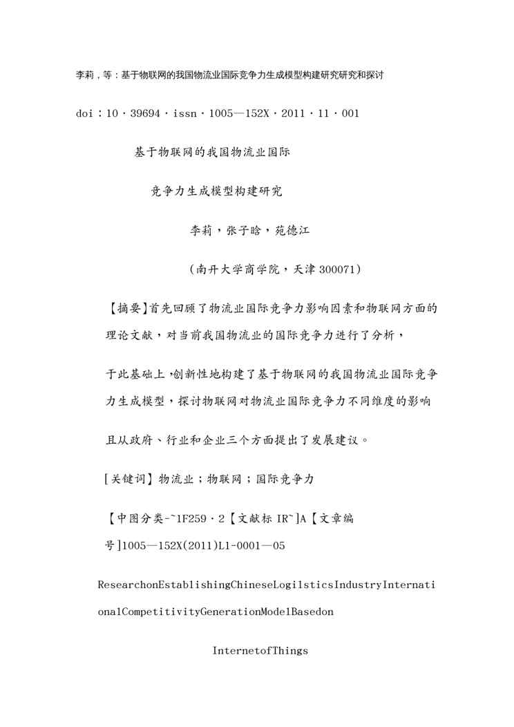 本站资深用户发布了最新的《(物流管理)基于物联网的我国物流业国际竞争力生成模型构建研究》文档,以下内容为预览,详细内容可下载阅读。 声明:本站所有文章,如无特殊说明或标注,均为本站原创发布。任何个人或组织,在未征得本站同意时,禁止复制、盗用、采集、发布本站内容到任何网站、书籍等各类媒体平台。如若本站内容侵犯了原著者的合法权益,可联系我们进行处理。