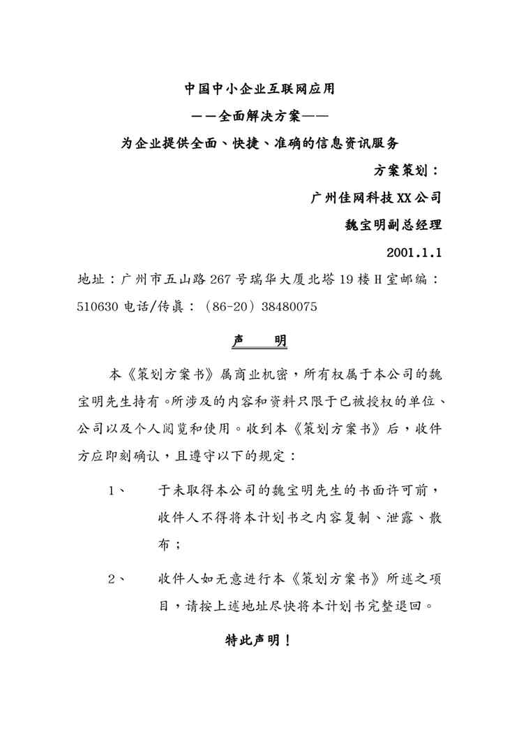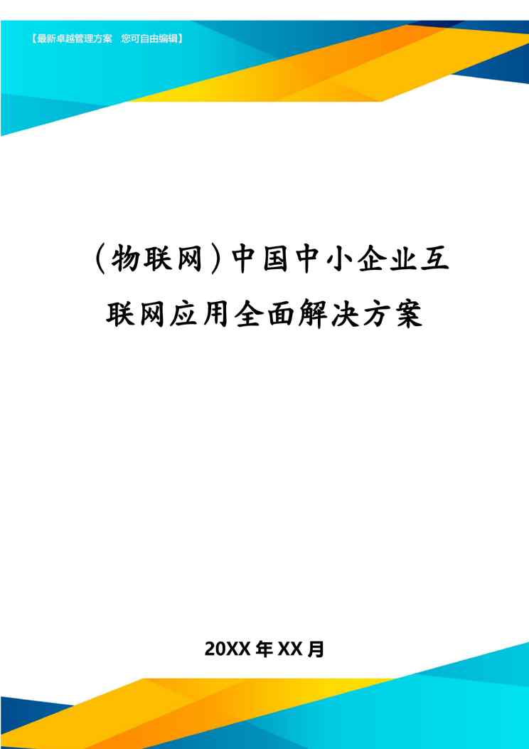 本站资深用户发布了最新的《(物联网)中国中小企业互联网应用全面解决方案》文档,以下内容为预览,详细内容可下载阅读。 声明:本站所有文章,如无特殊说明或标注,均为本站原创发布。任何个人或组织,在未征得本站同意时,禁止复制、盗用、采集、发布本站内容到任何网站、书籍等各类媒体平台。如若本站内容侵犯了原著者的合法权益,可联系我们进行处理。