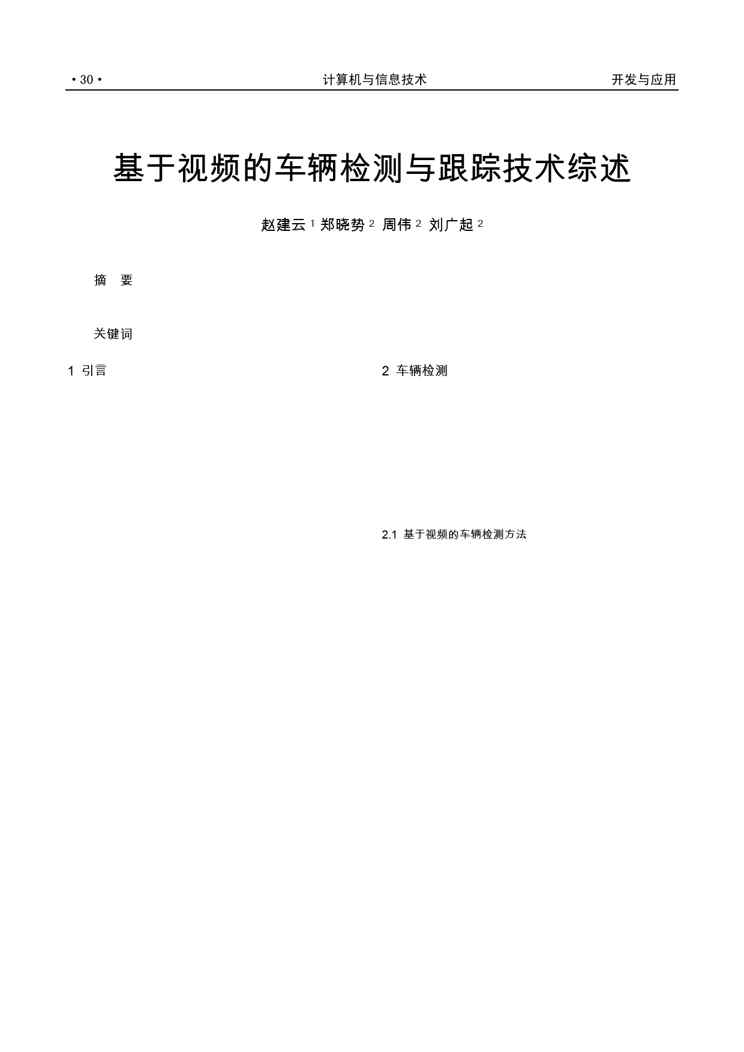 本站资深用户发布了最新的《基于视频的车辆检测与跟踪技术综述》文档,以下内容为预览,详细内容可下载阅读。 声明:本站所有文章,如无特殊说明或标注,均为本站原创发布。任何个人或组织,在未征得本站同意时,禁止复制、盗用、采集、发布本站内容到任何网站、书籍等各类媒体平台。如若本站内容侵犯了原著者的合法权益,可联系我们进行处理。