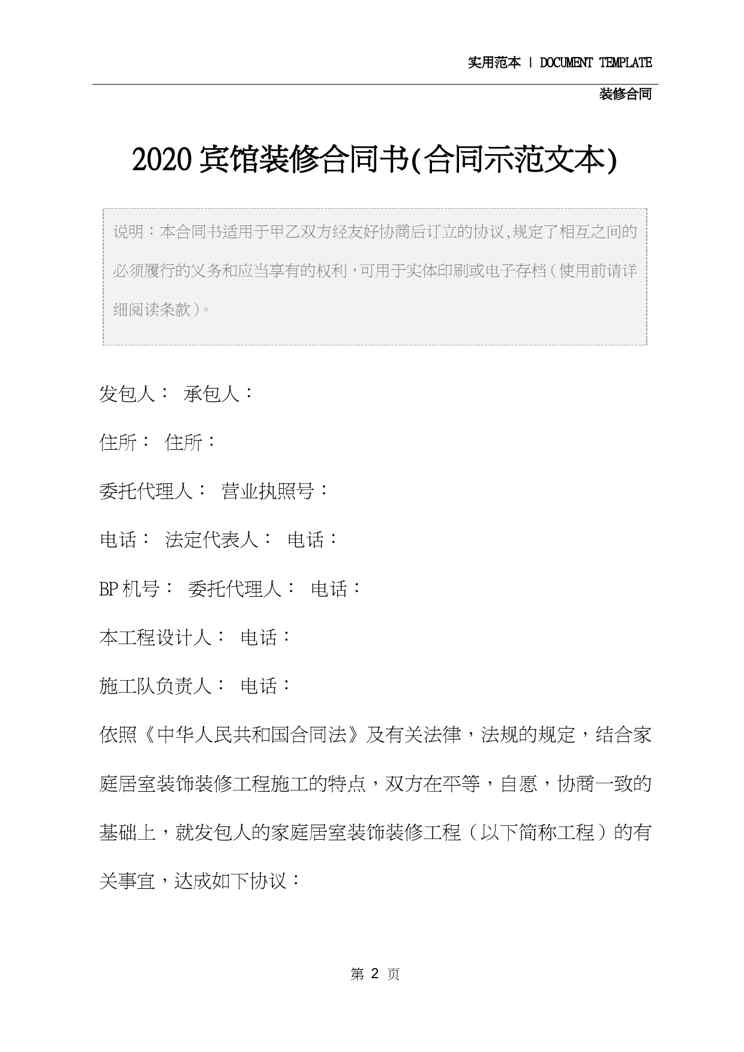本站资深用户发布了最新的《2020宾馆装修合同书(合同示范文本)》文档,以下内容为预览,详细内容可下载阅读。 声明:本站所有文章,如无特殊说明或标注,均为本站原创发布。任何个人或组织,在未征得本站同意时,禁止复制、盗用、采集、发布本站内容到任何网站、书籍等各类媒体平台。如若本站内容侵犯了原著者的合法权益,可联系我们进行处理。