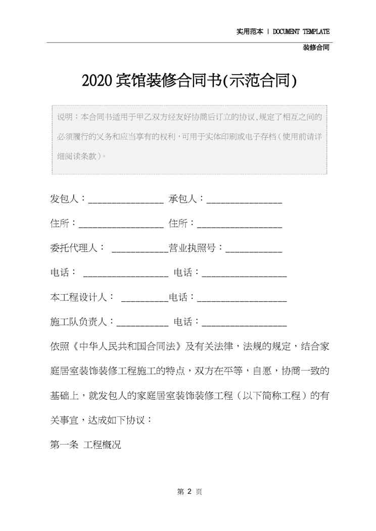 不久前,最新文档《2020宾馆装修合同书(示范合同)》全文正式在本站发布,感兴趣的用户可以下载阅读。 声明:本站所有文章,如无特殊说明或标注,均为本站原创发布。任何个人或组织,在未征得本站同意时,禁止复制、盗用、采集、发布本站内容到任何网站、书籍等各类媒体平台。如若本站内容侵犯了原著者的合法权益,可联系我们进行处理。