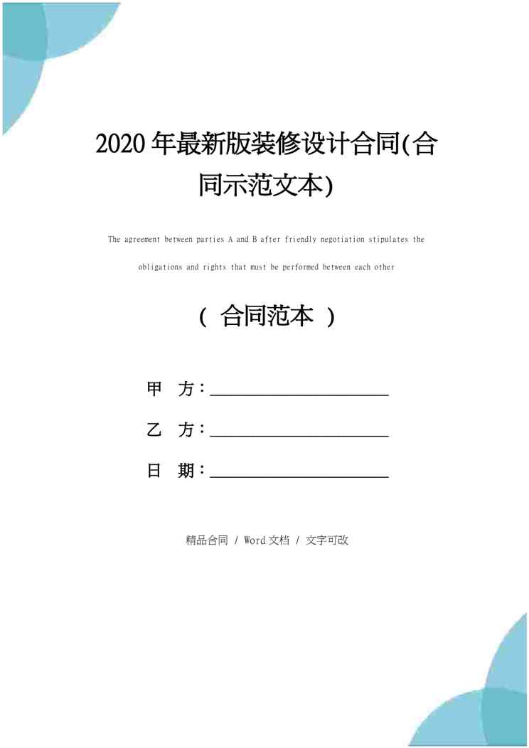 不久前,最新文档《2020年最新版装修设计合同(合同示范文本)》全文正式在本站发布,感兴趣的用户可以下载阅读。 声明:本站所有文章,如无特殊说明或标注,均为本站原创发布。任何个人或组织,在未征得本站同意时,禁止复制、盗用、采集、发布本站内容到任何网站、书籍等各类媒体平台。如若本站内容侵犯了原著者的合法权益,可联系我们进行处理。