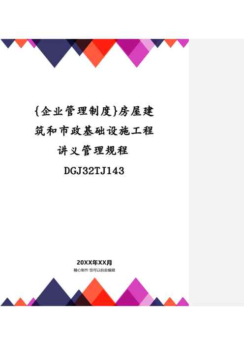 本站资深用户发布了最新的《{企业管理制度}房屋建筑和市政基础设施工程讲义管理规程DGJ32TJ143》文档,以下内容为预览,详细内容可下载阅读。 声明:本站所有文章,如无特殊说明或标注,均为本站原创发布。任何个人或组织,在未征得本站同意时,禁止复制、盗用、采集、发布本站内容到任何网站、书籍等各类媒体平台。如若本站内容侵犯了原著者的合法权益,可联系我们进行处理。