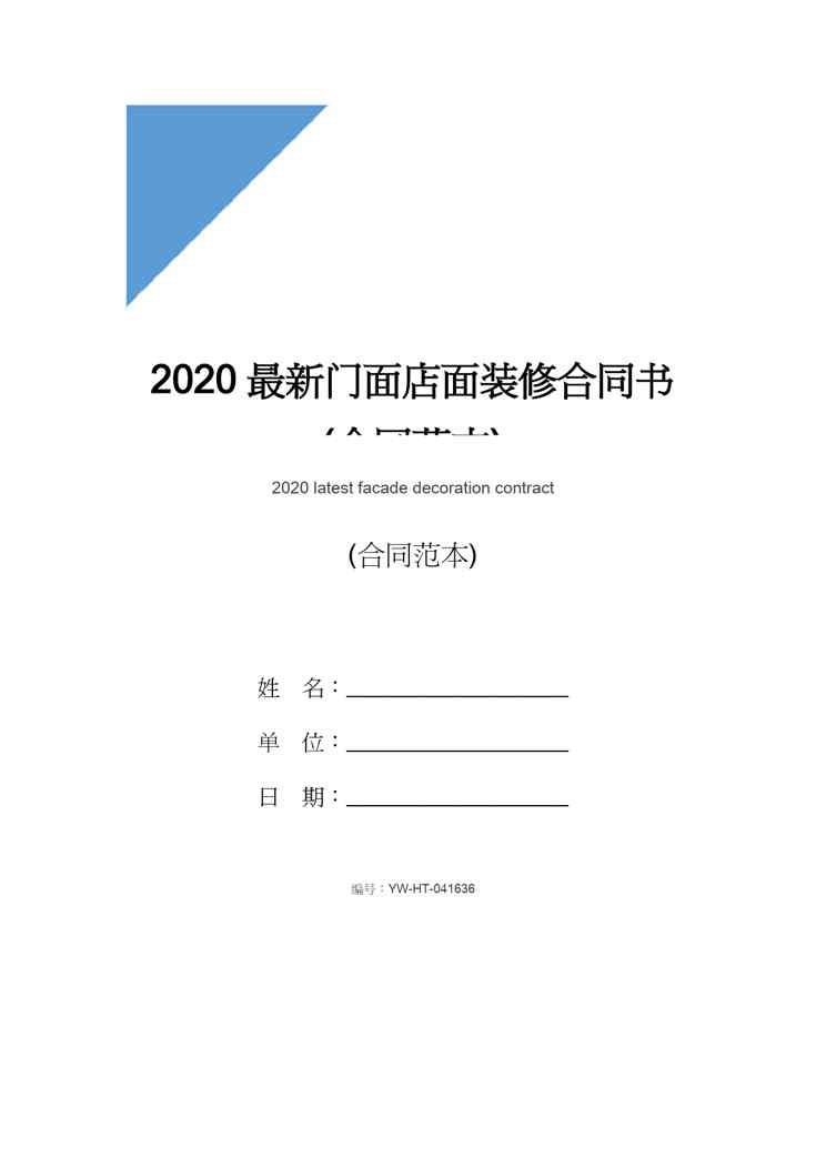 不久前,最新文档《2020最新门面店面装修合同书(合同范本)》全文正式在本站发布,感兴趣的用户可以下载阅读。 声明:本站所有文章,如无特殊说明或标注,均为本站原创发布。任何个人或组织,在未征得本站同意时,禁止复制、盗用、采集、发布本站内容到任何网站、书籍等各类媒体平台。如若本站内容侵犯了原著者的合法权益,可联系我们进行处理。