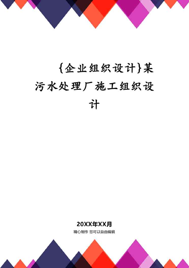 不久前,最新文档《{企业组织设计}某污水处理厂施工组织设计》全文正式在本站发布,感兴趣的用户可以下载阅读。 声明:本站所有文章,如无特殊说明或标注,均为本站原创发布。任何个人或组织,在未征得本站同意时,禁止复制、盗用、采集、发布本站内容到任何网站、书籍等各类媒体平台。如若本站内容侵犯了原著者的合法权益,可联系我们进行处理。