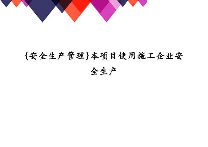 本站正式发布了《{安全生产管理}本项目使用施工企业安全生产》文档,文档详细内容可下载阅读。 声明:本站所有文章,如无特殊说明或标注,均为本站原创发布。任何个人或组织,在未征得本站同意时,禁止复制、盗用、采集、发布本站内容到任何网站、书籍等各类媒体平台。如若本站内容侵犯了原著者的合法权益,可联系我们进行处理。