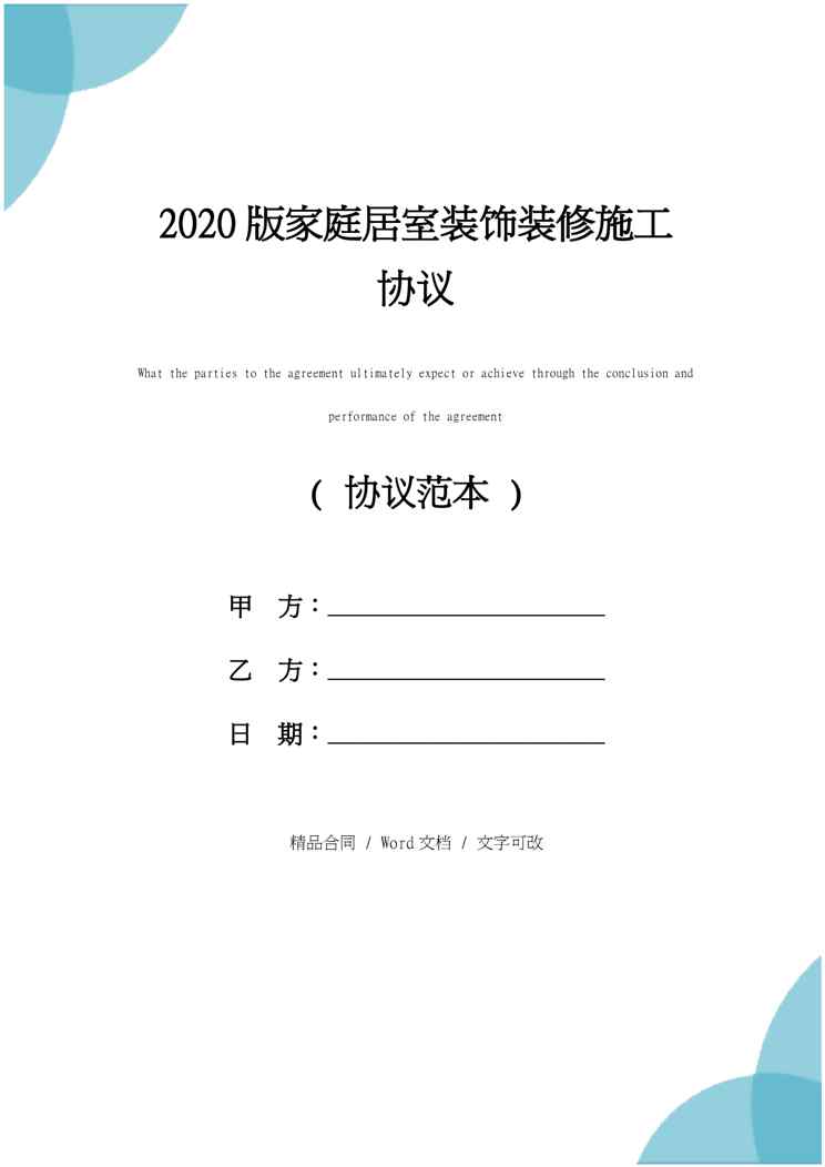 本站资深用户发布了最新的《2020版家庭居室装饰装修施工协议》文档,以下内容为预览,详细内容可下载阅读。 声明:本站所有文章,如无特殊说明或标注,均为本站原创发布。任何个人或组织,在未征得本站同意时,禁止复制、盗用、采集、发布本站内容到任何网站、书籍等各类媒体平台。如若本站内容侵犯了原著者的合法权益,可联系我们进行处理。