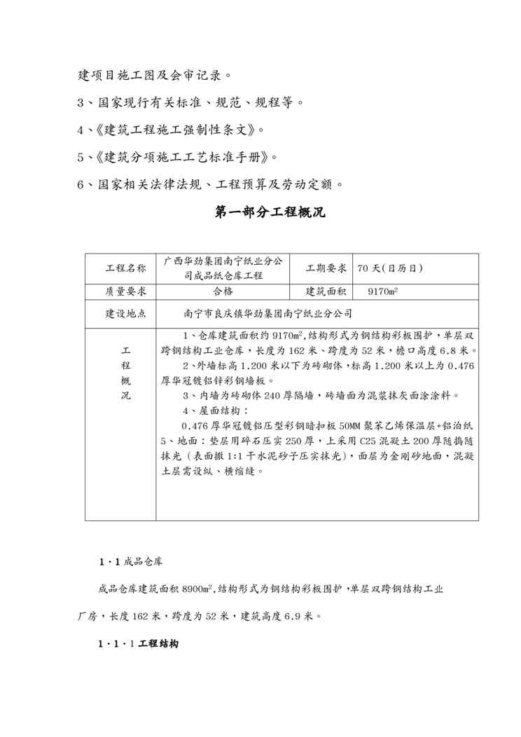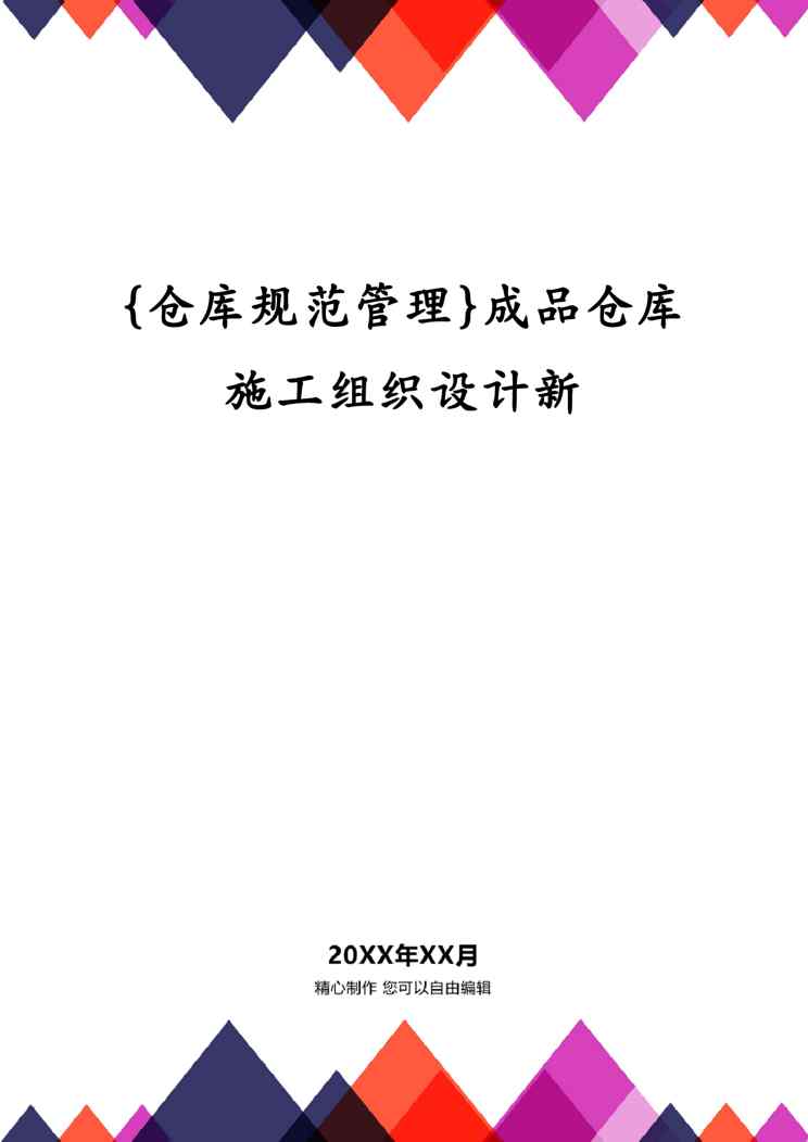 本站资深用户发布了最新的《{仓库规范管理}成品仓库施工组织设计新》文档,以下内容为预览,详细内容可下载阅读。 声明:本站所有文章,如无特殊说明或标注,均为本站原创发布。任何个人或组织,在未征得本站同意时,禁止复制、盗用、采集、发布本站内容到任何网站、书籍等各类媒体平台。如若本站内容侵犯了原著者的合法权益,可联系我们进行处理。