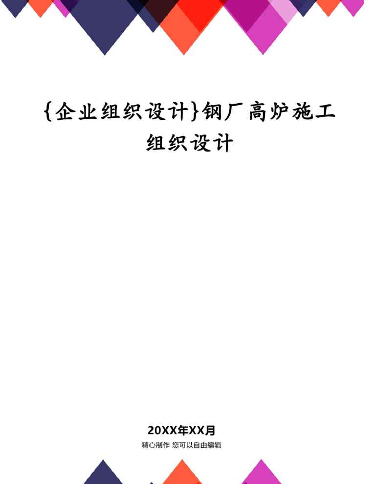 本站资深用户发布了最新的《{企业组织设计}钢厂高炉施工组织设计》文档,以下内容为预览,详细内容可下载阅读。 声明:本站所有文章,如无特殊说明或标注,均为本站原创发布。任何个人或组织,在未征得本站同意时,禁止复制、盗用、采集、发布本站内容到任何网站、书籍等各类媒体平台。如若本站内容侵犯了原著者的合法权益,可联系我们进行处理。