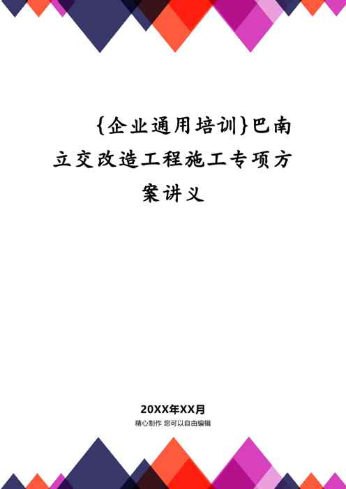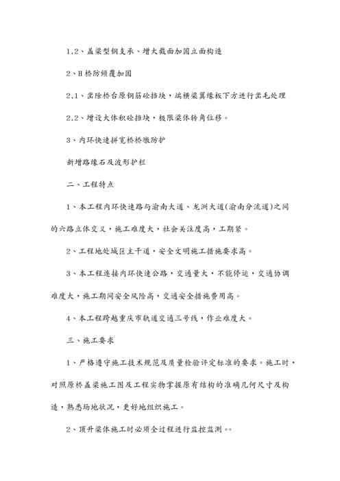 本站资深用户发布了最新的《{企业通用培训}巴南立交改造工程施工专项方案讲义》文档,以下内容为预览,详细内容可下载阅读。 声明:本站所有文章,如无特殊说明或标注,均为本站原创发布。任何个人或组织,在未征得本站同意时,禁止复制、盗用、采集、发布本站内容到任何网站、书籍等各类媒体平台。如若本站内容侵犯了原著者的合法权益,可联系我们进行处理。
