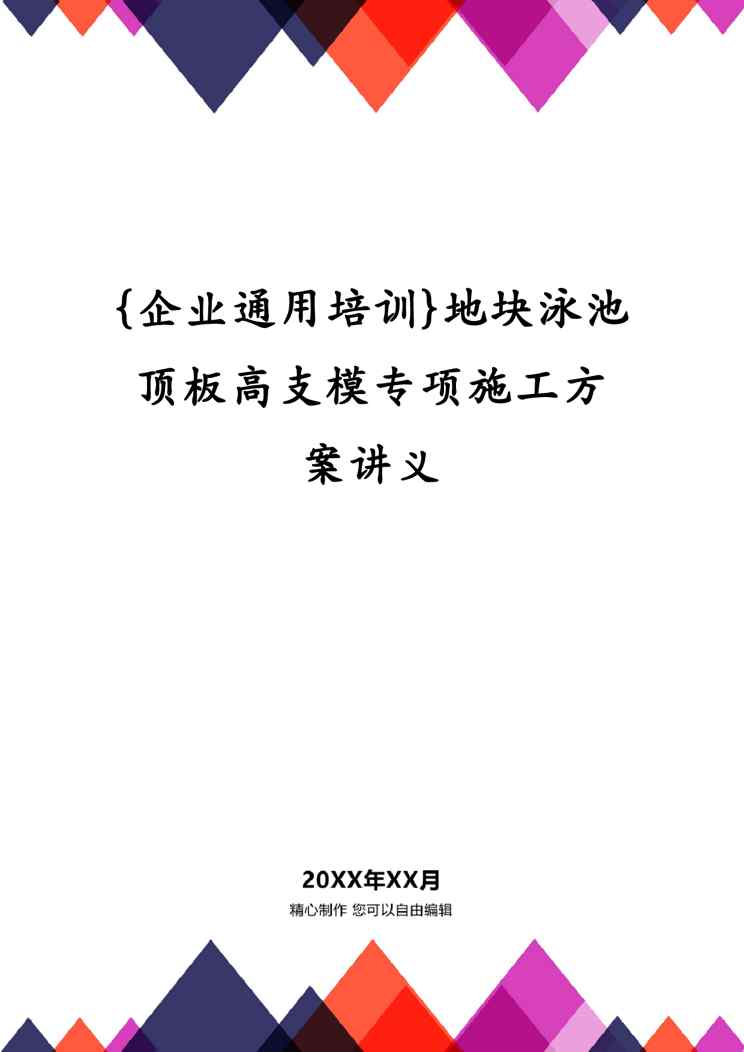 本站资深用户发布了最新的《{企业通用培训}地块泳池顶板高支模专项施工方案讲义》文档,以下内容为预览,详细内容可下载阅读。 声明:本站所有文章,如无特殊说明或标注,均为本站原创发布。任何个人或组织,在未征得本站同意时,禁止复制、盗用、采集、发布本站内容到任何网站、书籍等各类媒体平台。如若本站内容侵犯了原著者的合法权益,可联系我们进行处理。