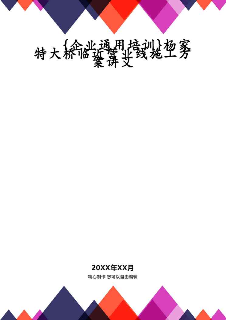 不久前,最新文档《{企业通用培训}杨家特大桥临近营业线施工方案讲义》全文正式在本站发布,感兴趣的用户可以下载阅读。 声明:本站所有文章,如无特殊说明或标注,均为本站原创发布。任何个人或组织,在未征得本站同意时,禁止复制、盗用、采集、发布本站内容到任何网站、书籍等各类媒体平台。如若本站内容侵犯了原著者的合法权益,可联系我们进行处理。