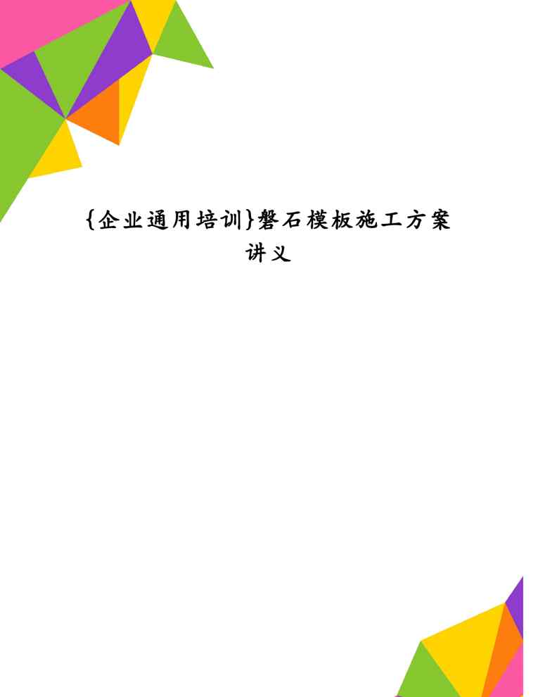 不久前,最新文档《{企业通用培训}磐石模板施工方案讲义1609152341》全文正式在本站发布,感兴趣的用户可以下载阅读。 声明:本站所有文章,如无特殊说明或标注,均为本站原创发布。任何个人或组织,在未征得本站同意时,禁止复制、盗用、采集、发布本站内容到任何网站、书籍等各类媒体平台。如若本站内容侵犯了原著者的合法权益,可联系我们进行处理。