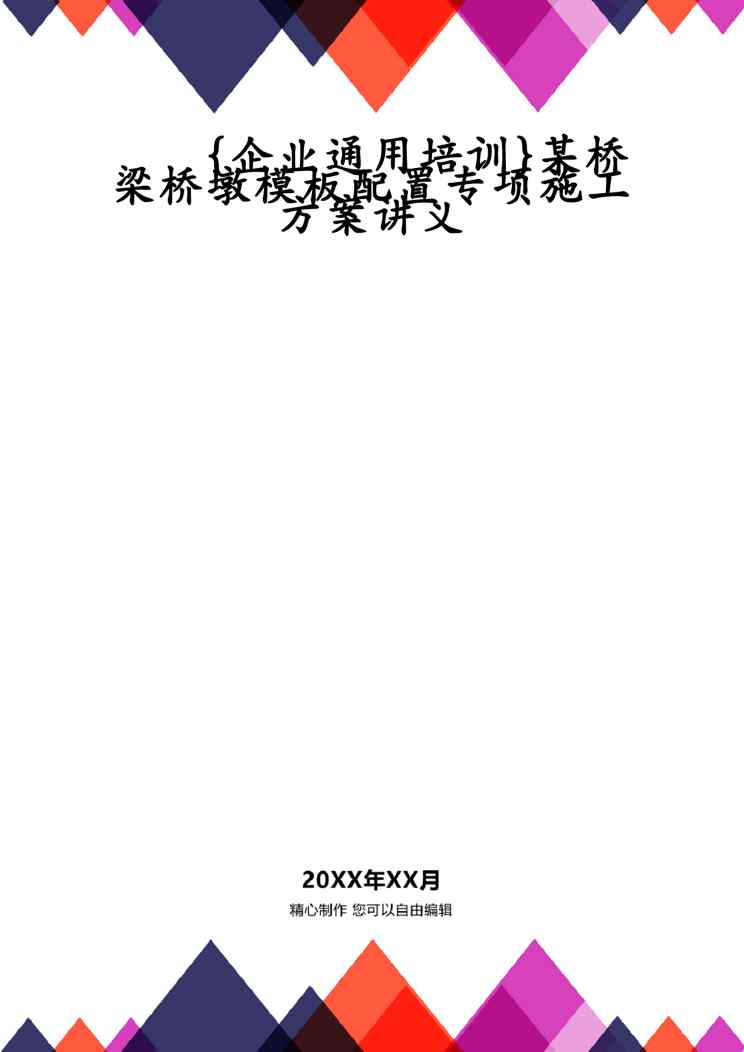 本站资深用户发布了最新的《{企业通用培训}某桥梁桥墩模板配置专项施工方案讲义》文档,以下内容为预览,详细内容可下载阅读。 声明:本站所有文章,如无特殊说明或标注,均为本站原创发布。任何个人或组织,在未征得本站同意时,禁止复制、盗用、采集、发布本站内容到任何网站、书籍等各类媒体平台。如若本站内容侵犯了原著者的合法权益,可联系我们进行处理。