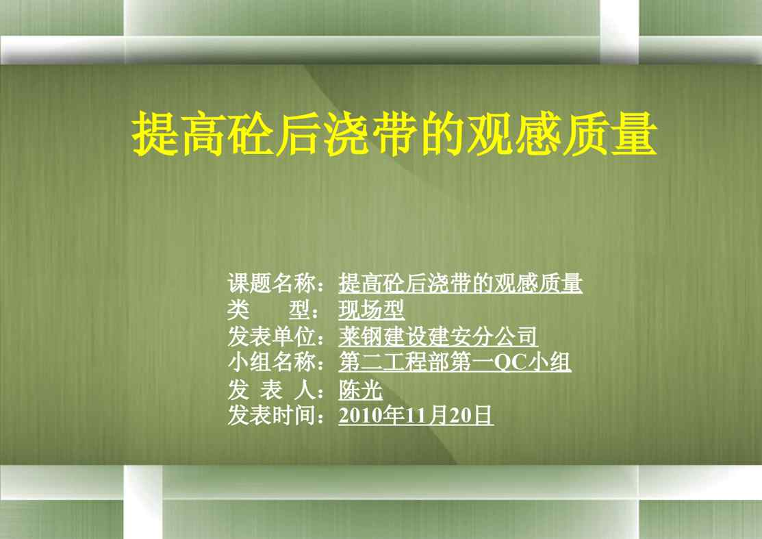 {品质管理QC七大手法}提高混凝土后浇带外观质量QC成果{品质管理QC七大手法}提高混凝土后浇带外观质量QC成果{品质管理QC七大手法}提高混凝土后浇带外观质量QC成果{品质管理QC七大手法}提高混凝土后浇带外观质量QC成果{品质管理QC七大手法}提高混凝土后浇带外观质量QC成果