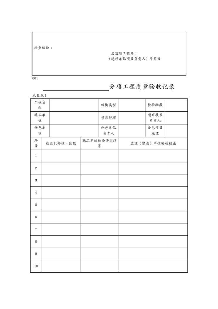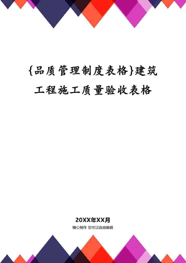 本站正式发布了《{品质管理制度表格}建筑工程施工质量验收表格》文档,文档详细内容可下载阅读。 声明:本站所有文章,如无特殊说明或标注,均为本站原创发布。任何个人或组织,在未征得本站同意时,禁止复制、盗用、采集、发布本站内容到任何网站、书籍等各类媒体平台。如若本站内容侵犯了原著者的合法权益,可联系我们进行处理。