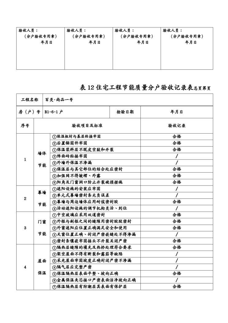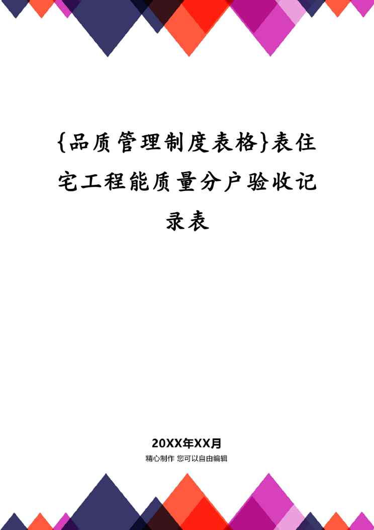 本站资深用户发布了最新的《{品质管理制度表格}表住宅工程能质量分户验收记录表》文档,以下内容为预览,详细内容可下载阅读。 声明:本站所有文章,如无特殊说明或标注,均为本站原创发布。任何个人或组织,在未征得本站同意时,禁止复制、盗用、采集、发布本站内容到任何网站、书籍等各类媒体平台。如若本站内容侵犯了原著者的合法权益,可联系我们进行处理。