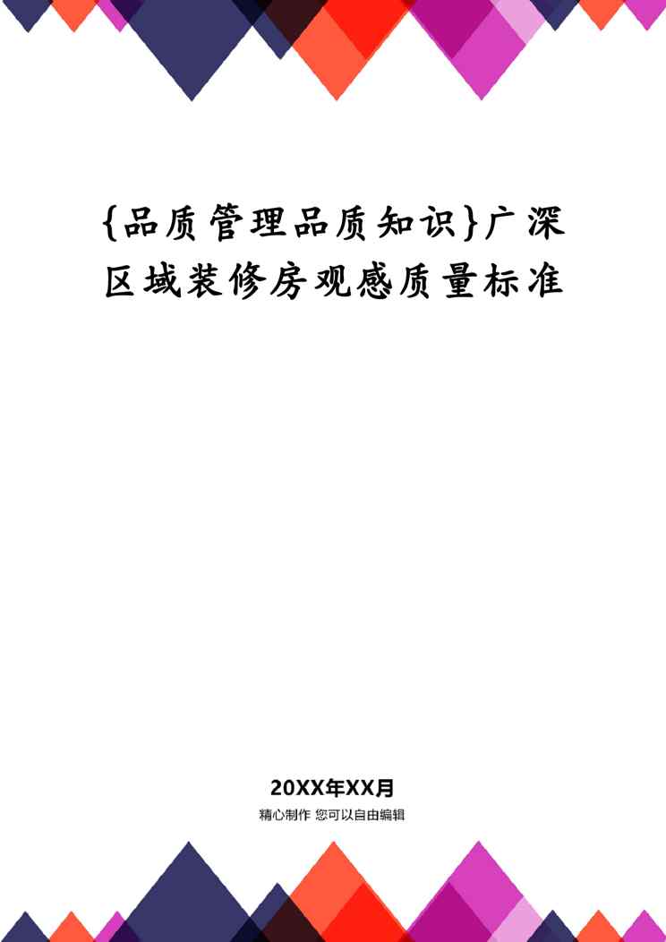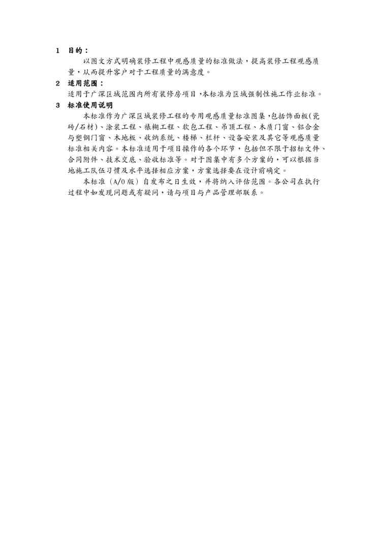 不久前,最新文档《{品质管理品质知识}广深区域装修房观感质量标准》全文正式在本站发布,感兴趣的用户可以下载阅读。 声明:本站所有文章,如无特殊说明或标注,均为本站原创发布。任何个人或组织,在未征得本站同意时,禁止复制、盗用、采集、发布本站内容到任何网站、书籍等各类媒体平台。如若本站内容侵犯了原著者的合法权益,可联系我们进行处理。