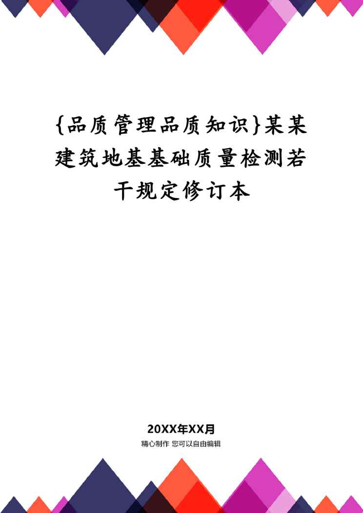 不久前,最新文档《{品质管理品质知识}某某建筑地基基础质量检测若干规定修订本》全文正式在本站发布,感兴趣的用户可以下载阅读。 声明:本站所有文章,如无特殊说明或标注,均为本站原创发布。任何个人或组织,在未征得本站同意时,禁止复制、盗用、采集、发布本站内容到任何网站、书籍等各类媒体平台。如若本站内容侵犯了原著者的合法权益,可联系我们进行处理。