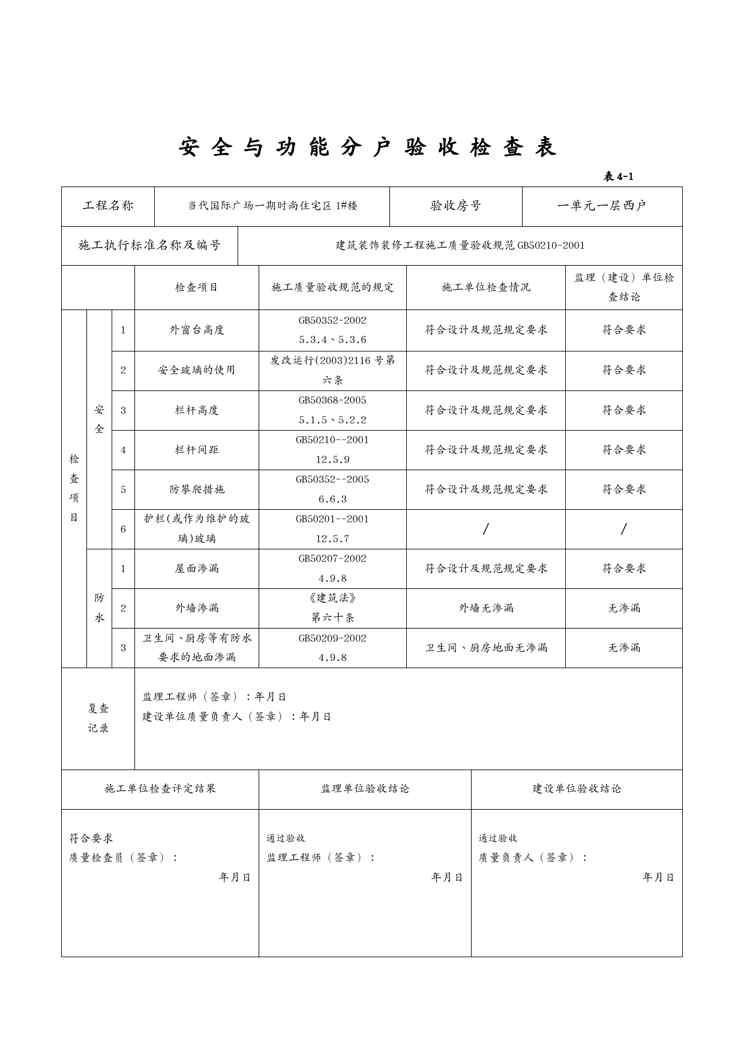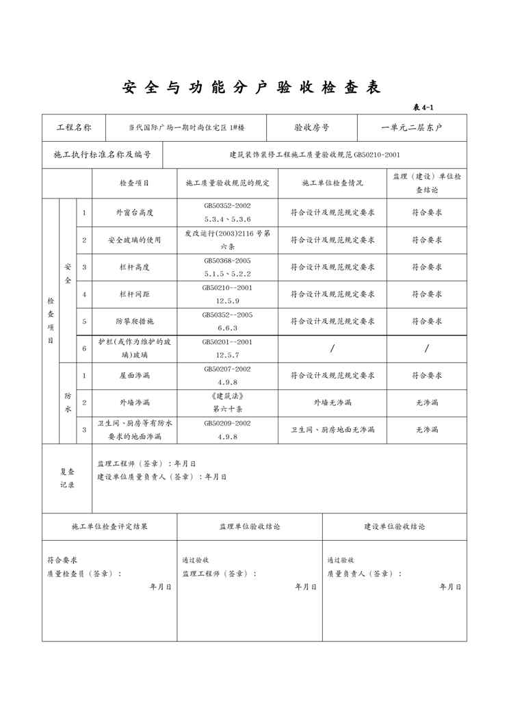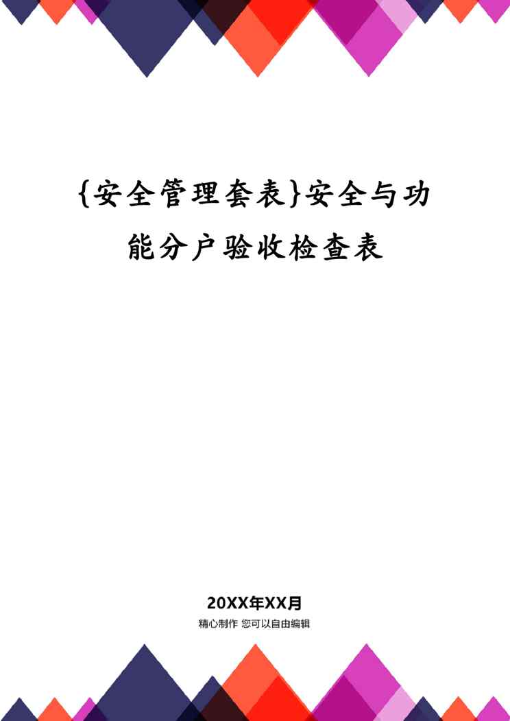 本站正式发布了《{安全管理套表}安全与功能分户验收检查表》文档,文档详细内容可下载阅读。 声明:本站所有文章,如无特殊说明或标注,均为本站原创发布。任何个人或组织,在未征得本站同意时,禁止复制、盗用、采集、发布本站内容到任何网站、书籍等各类媒体平台。如若本站内容侵犯了原著者的合法权益,可联系我们进行处理。