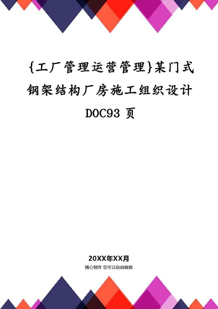 本站资深用户发布了最新的《{工厂管理运营管理}某门式钢架结构厂房施工组织设计DOC93页》文档,以下内容为预览,详细内容可下载阅读。 声明:本站所有文章,如无特殊说明或标注,均为本站原创发布。任何个人或组织,在未征得本站同意时,禁止复制、盗用、采集、发布本站内容到任何网站、书籍等各类媒体平台。如若本站内容侵犯了原著者的合法权益,可联系我们进行处理。